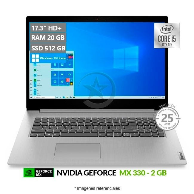 Laptop Lenovo IdeaPad 3 (17), Intel Core i5-1035G1 hasta 3.6GHz, RAM 20GB, SSD 512GB, Video 2GB Nvidia MX330, LED 17.3" HD+, Windows 10 Home