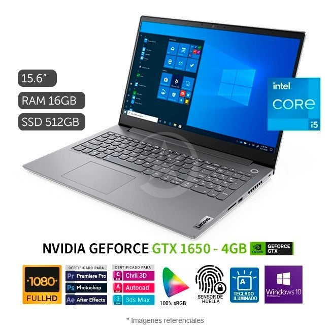 Laptop Lenovo ThinkBook 15p, Intel Core i5-10300H Hasta 4.5 GHz, RAM 16GB, SSD 512GB, 4GB NVIDIA GeForce GTX1650, LED 15.6" FHD, Windows 10 Pro