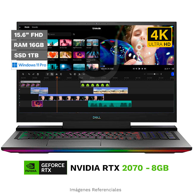 Laptop Dell G7 15-7500 Gaming, Core i7-10750H 2.6GHz, RAM 32GB, SSD 1TB, Video 8GB Nvidia RTX 2070 Max-Q, LED OLED 15.6" Ultra HD 4K 100% DCI-P3, Windows 11 Pro