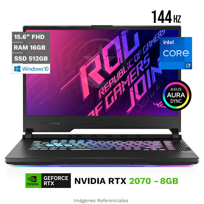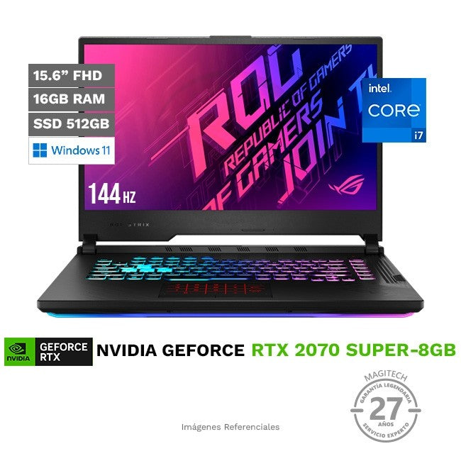 Laptop Asus ROG Strix G15-G512LWS Gaming, Intel Core i7-10850H Hasta 5.1 GHz, RAM 16GB, SSD 512GB, Video 8GB NVIDIA RTX 2070 SUPER, LED 15.6" Full HD a 144Hz, Windows 11 Home