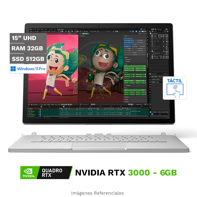 Convertible Microsoft Surface Book 3 (15"), Core i7-1065G7 Hasta 3.9 GHz, RAM 32GB, SSD 512GB, Video 6GB NVIDIA Quadro RTX 3000, Pantalla desmontable 15.0" UHD 4K Táctil, Windows 11 Pro