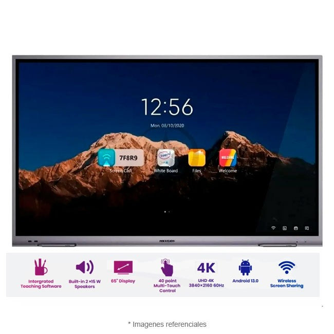 Pantalla Pizarra Interactiva HIKVISION de 65" Touch/ Android / Cámara Web 8MP / Resolución 4K / Bocinas Integradas / HDMI/ VGA / 2 Lápices para Escribir