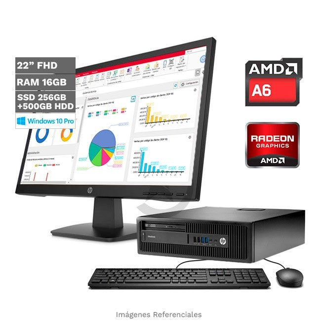 Combo PC HP EliteDesk 705 G1 SFF, AMD A6 PRO-7400B 3.5 GHz, RAM 16GB, SSD 256GB + HDD 500GB, Radeon R5, Windows 10 Pro + Monitor 22'' FHD