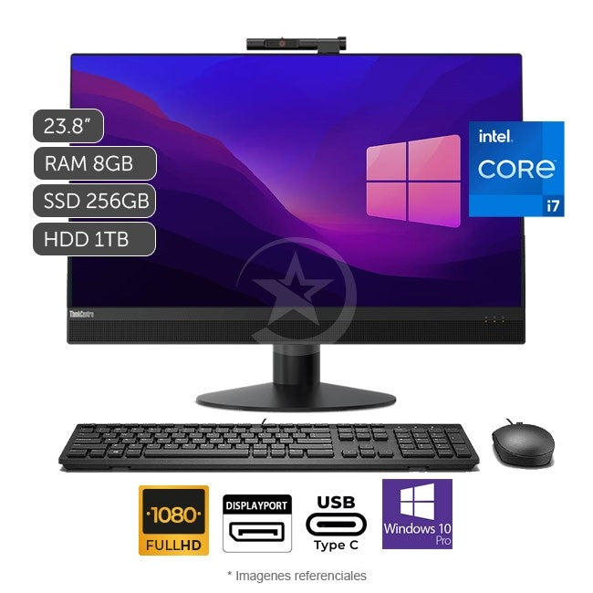 PC Lenovo Todo en Uno ThinkCentre M920z, Intel Core i7-8700 3.2GHz, RAM 8GB, Sólido SSD 256GB ó HDD 1TB, Wi-FI, LED 23.8" Full HD, Windows 10 Pro