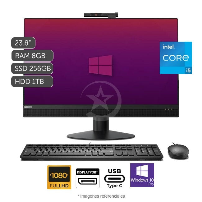 PC All-in-One Lenovo IdeaCentre 5 (24") Touch, Intel Core i5-10400T Hasta 3.6 GHz, RAM 16GB, SSD 256GB, LED 23.8" FHD Touch, Windows 11 Home