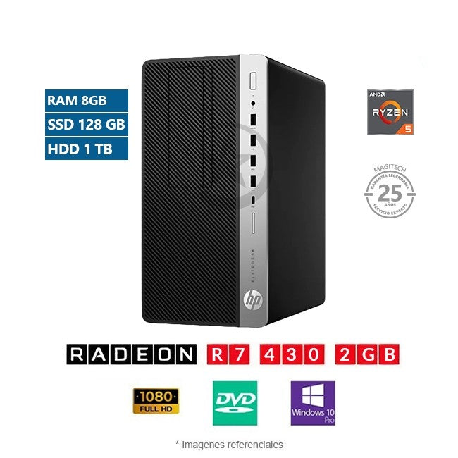 PC HP EliteDesk 705 G4 AMD Ryzen 5 Pro 3.4GHz, RAM 8GB, SSD 128GB + HDD 1TB, Video dedicado de 2GB AMD R7-430, DVD-RW, Windows 10 Pro SP