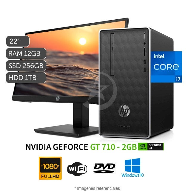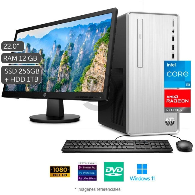 Combo-PC HP Pavilion TP01-23C, Core i5-11400 Hasta 4.4 GHz, RAM 12GB, SSD 256GB + HDD 1TB, Video 2GB AMD Radeon RX 550, Wi-Fi, DVD, Windows 11 Home + Monitor 22''