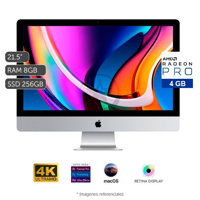 PC Apple iMac 21.5 4K, Intel Core i5 3.0 GHz, RAM 8GB, SSD 256GB, Video 4GB AMD Radeon Pro 560X, Pantalla 21.5" UHD 4K Retina, Mac OS