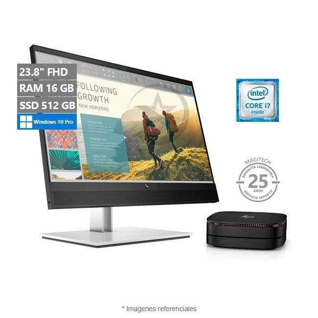 Combo-PC HP Elite Slice G2, Intel Core i5 7500T 2.7 GHz, RAM 16GB, SSD 512GB, Wi-Fi, Bluetooth, Windows 10 Enterprise + Monitor Premium HP 24'' con Cámara Web