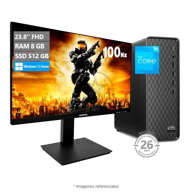 Combo PC HP Slim S01-PF1500, Intel Core i3-12100 Hasta 4,3 GHz, RAM 8GB, SSD 512GB, Wi-Fi, Bluetooth, W11H + Monitor 23.8'' incluido
