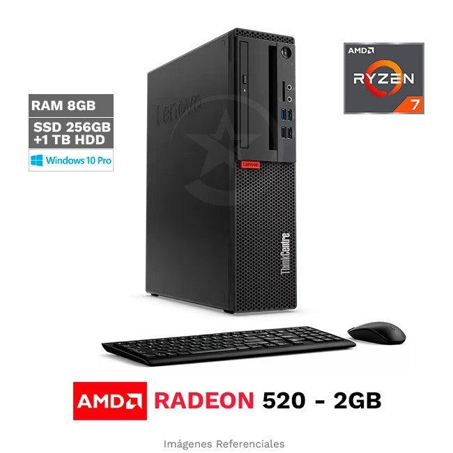 PC Lenovo ThinkCentre M75s SFF, AMD Ryzen 7 Pro 3700 Hasta 4.4 GHz, RAM 8GB, SSD 256 GB + HDD 1TB, 2GB AMD Radeon 520, DVD-RW, Windows 10 Pro