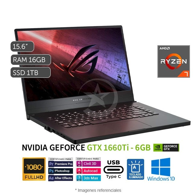 Laptop Asus ROG ZEPHYRUS G GA502DU Gaming, AMD Ryzen 7-3750H 2.3GHz, RAM 16GB, SSD 512GB, Video 6GB Nvidia GTX 1660TI Max-Q, LED 15.6" Full HD, Windows 10 Home