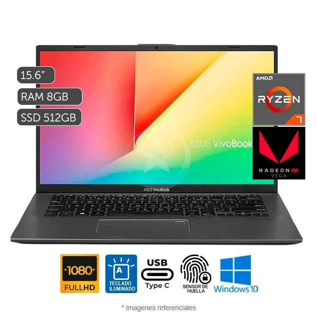 Laptop ASUS Vivobook 14 F412DA, AMD Ryzen 7 3700U 2.3GHz, RAM 8GB, SSD 512GB, LED 14 " Full HD, Windows 10 home