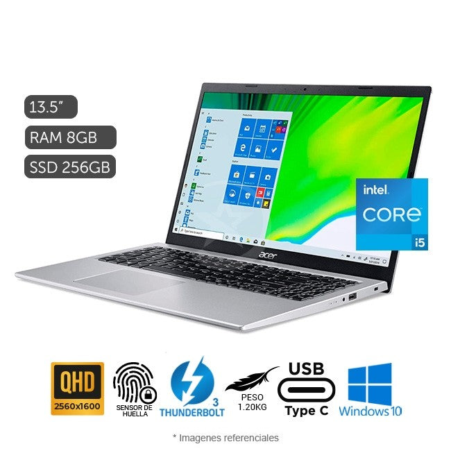 Laptop ACER Swift 3 SF313-52 Ultrabook, Core i5-1035G4 Hasta 3.7 GHz, RAM 8GB, SSD 256GB, Intel Iris Plus, LED 13.5" 2K, Windows 11 Pro, Peso 1.2 Kg