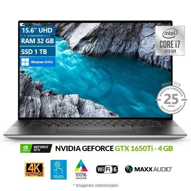 - Pantalla Táctil antirreflectante InfinityEdge de 15,6 UHD+ 4K, Brillo 500 nits, Adobe RGB 100%