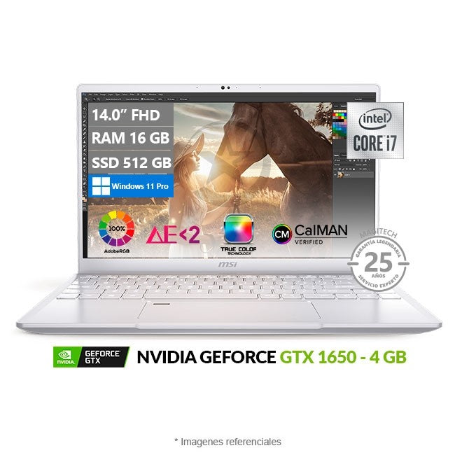 Laptop MSI Prestige 14 A10SC Creator Ultrabook, Intel Core i7-10710U hasta 4.7GHz, RAM 16GB, SSD 512GB, Video 4GB NVIDIA GTX 1650, LED 14" FHD, Windows 11 Pro