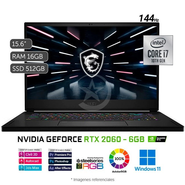 Laptop MSI Stealth GS66 10SF Gaming, Core i7-10750H 2.6GHz, RAM 16GB, SSD 1TB, Video 6GB NVIDIA GeForce RTX 2060, LED 15.6" FHD a 240Hz, Windows 11 Pro (Laptop Gaming Premium)