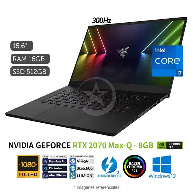 Laptop RAZER Blade 15 Gaming Deluxe, Core i7-10875H Hasta 5.0 GHz, RAM 32GB, SSD 1TB, Video 8GB NVIDIA GeForce RTX 2070, LED 15.6" Full HD a 300 Hz, 100% Black Aluminum, Windows 11 Home