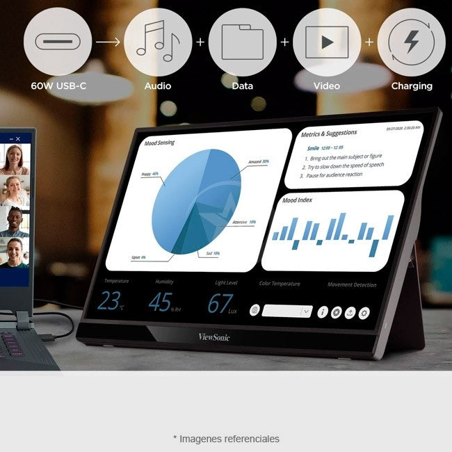 ''El Monitor Portátil ViewSonic VG1655 actúa como un segundo monitor de 16 pulgadas con conectividad USB-C y Mini-HDMI. Ideal para expandir la pantalla de tu laptop, PC, tablet o celular, ofreciendo mayor productividad y entretenimiento en movimiento. Versátil y portátil, es compatible con varios sistemas operativos y viene con un protector Premium Cover.''.